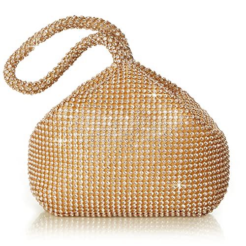 Vistatroy Women’s Evening Bag Sparkly Rhinestone Purse Triangle Designer Chain Clutch Purse Bag Party Prom Wedding Purse (Gold)