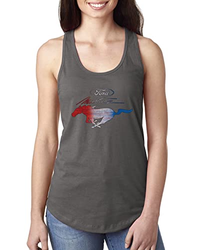 Ford Mustang Shirt USA Flag Mustang Emblem T-Shirt Cars and Trucks Ladies Racerback Tank Top, Dark Grey, X-Large