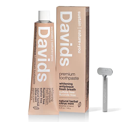 ![]() | Davids Natural Whitening Toothpaste, Herbal Citrus Peppermint, Antiplaque, Fluoride Free, SLS Free, 5.25 OZ Metal Tube, Tube Roller Included | Buy Now |